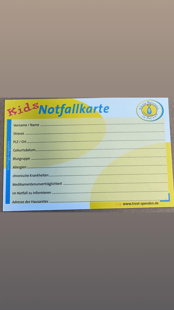Heute erreichte uns ein Paket des Vereins Kleine Patienten in Not e.V.. Mit diesem konnten wir gleich mehrere neue Begleiter für unsere Feuerwehr in Empfang nehmen. Um bei Einsätzen mit Kinderbeteiligung, diese vom Einsatzgeschehen abzulenken, sie zu beruhigen und ihnen ein Bezugspunkt zu geben, werden die kleinen flauschigen Bärchen nun bei uns mitfahren. In der Hoffnung, dass wir sie nicht allzu oft nutzen müssen, sind wir dennoch froh sie zu haben, falls auch mal die Kleinsten unter uns Hilfe benötigen. Außerdem bekamen wir gleich ein paar ,,Notfallkarten für Kids" dazu. Auf der Vorderseite befinden sich sämtliche W-Fragen, während auf der Rückseite alle Daten zu finden sind. Diese kann bei Notfällen einfach an Feuerwehr und Rettungsdienst übergeben werden, sodass diese sofort alle wichtigen Informationen parat haben. Die Karten geben wir sehr gerne und selbstverständlich kostenlos an euch weiter. Wir bedanken uns beim dem Verein Kleine Patienten in Not e.V., dass sie sich dieser wichtigen und dennoch nicht selbstverständlichen Sache angenommen hat und uns damit unterstützt. Schaut gerne mal auf deren Facebookseite oder Homepage vorbei. https://www.trost-spenden.de