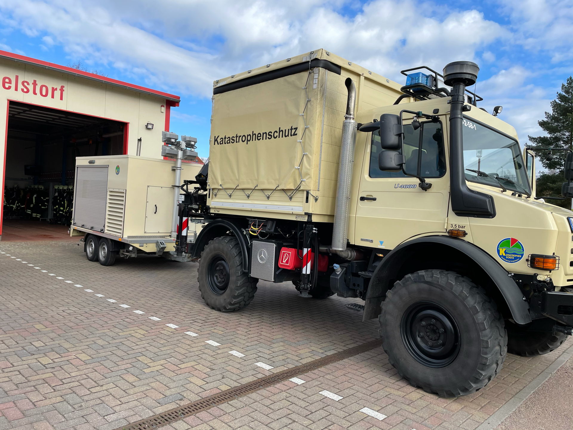 Am Donnerstagmittag hatten wir Besuch vom Landkreis. Unser im Jahre 2012 erhaltener Gerätewagen Katastrophenschutz besser bekannt als unser Unimog hat uns verlassen, auch wenn wir ihn gerne behalten hätten. Dennoch blicken wir mit einem lachendem und einem weinenden Auge darauf. Zum einen sind wir froh, dass wir unseren ELW nun wieder in unserem Gerätehaus begrüßen können aber zum anderen wird uns ein inzwischen ans Herz gewachsener Begleiter fehlen. Besonders das Elbhochwasser 2013 bleibt wohl im Gedächtnis. Wir wünschen ,,unserem" Unimog immer eine unfallfreie Fahrt und dass er alle Einsätze die noch auf ihn zukommen gut bewältigen wird. Und wer weiß. Vielleicht sieht man sich irgendwann ja mal wieder.